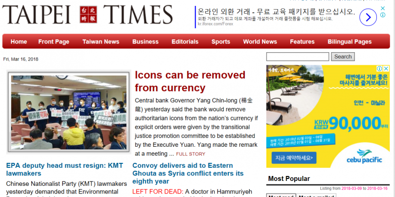 타이완 | 台北時報 (Taipei Times) 페이지 정보 작성자 거루 작성일18-03-16 18:53 조회9,454회 댓글0건 관련링크 http://www.taipeitimes.com/ 6116회 연결 이전글 다음글 검색 목록 본문 안녕하세요? 댓글목록 등록된 댓글이 없습니다. 이전글 다음글 검색 목록